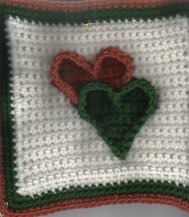 Bonnie Harlan made this square by incorporating an extra heart. She whip stitched around each heart and then put a single crochet in each whip stitch.